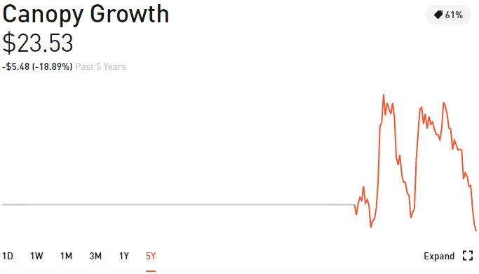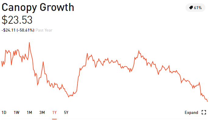 - Canopy Growth Corp. (CGC): 40 shares @ $23.49 (-6.19%)